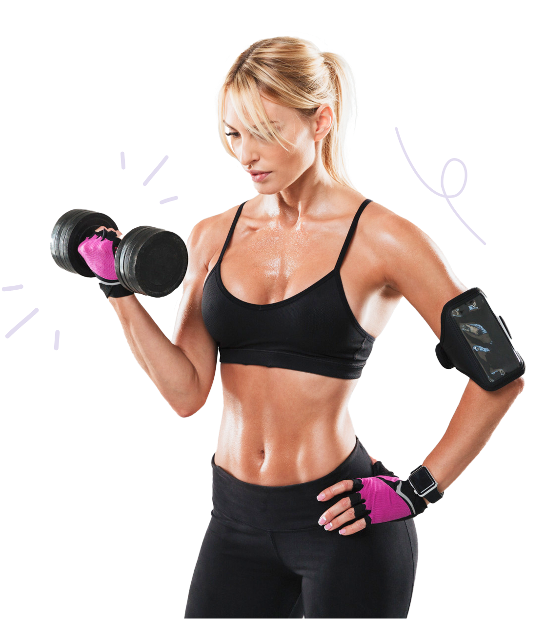 Just a set of light weights and a yoga mat—simple and effective!